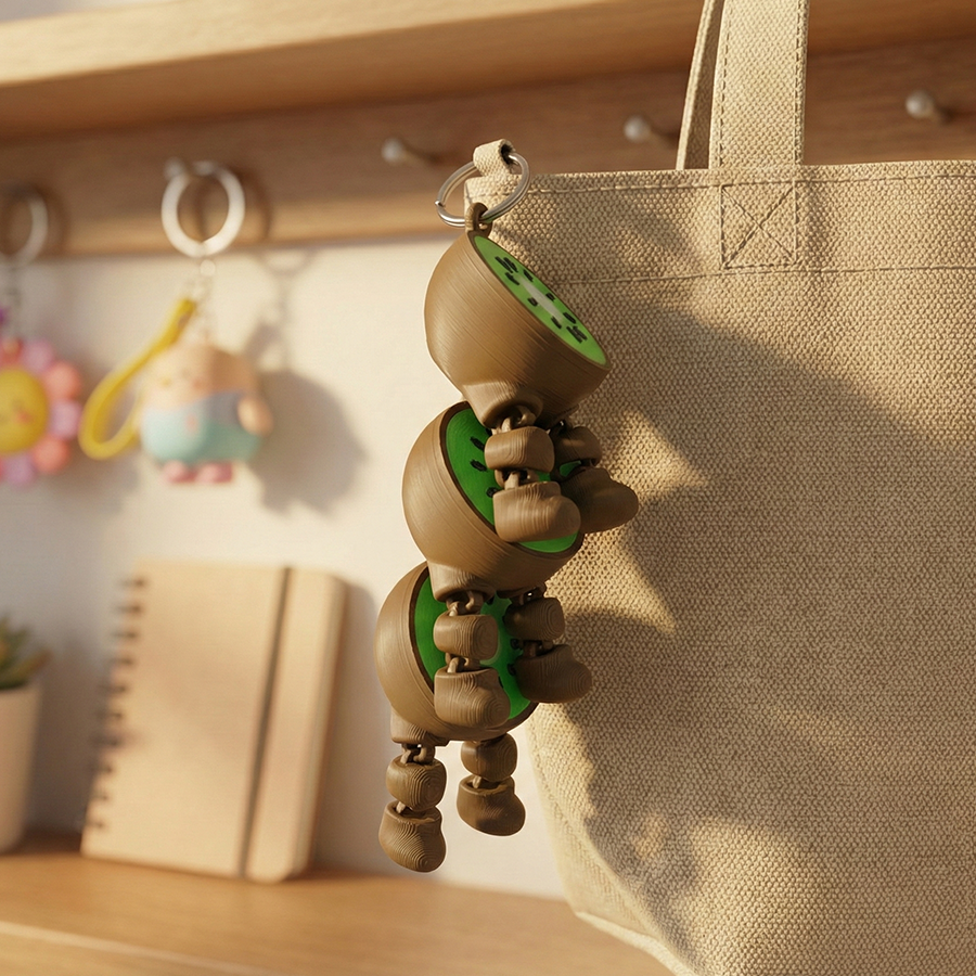 Stackable Kiwi Keychain – Support-Free & Articulated Fruit Link by Bigchx